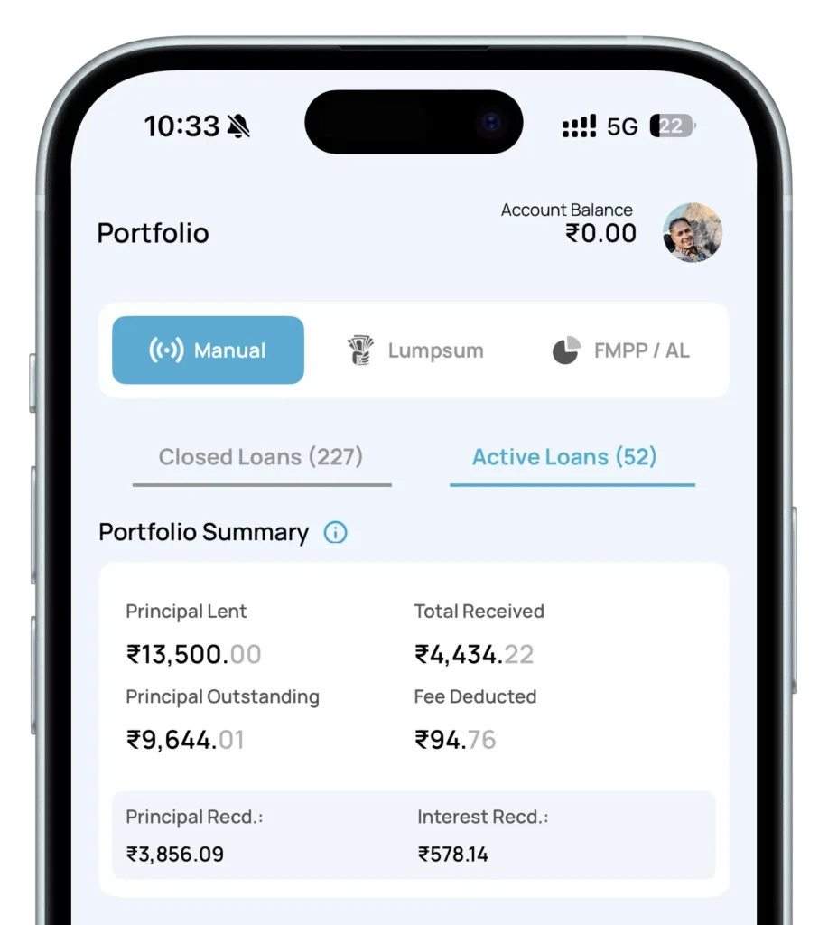 After borrowers receive their funds, repayments start flowing back to you. These include your original amount (principal) and your earnings (interest) as and when paid by the borrower.