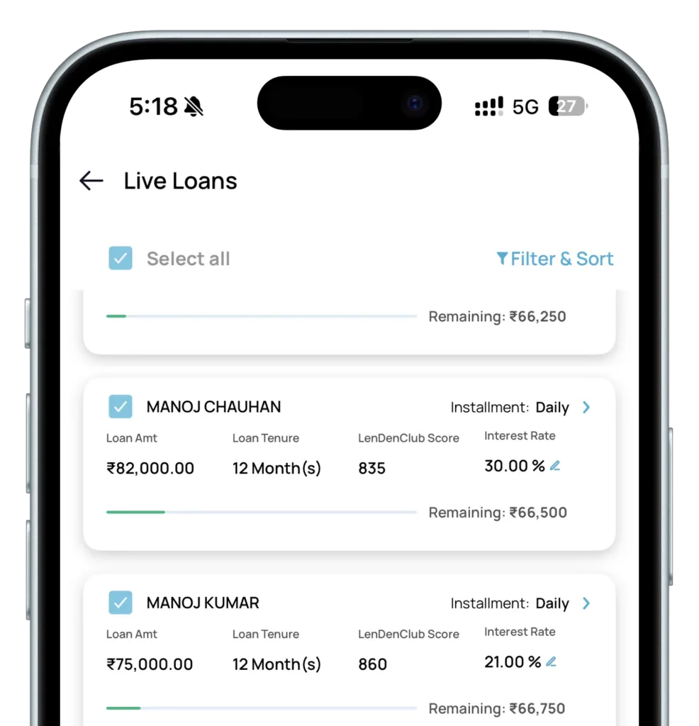 Open your LenDenClub dashboard and tap on “Live Options” or Manual Lending from the bottom menu. What you’ll see is a list of lending requests that have already cleared the approval process. These borrowers have been verified and assessed. Every listing shows you borrower details so you can make decisions with your eyes open. These borrowers have been through KYC checks, credit assessments, income verification and more.